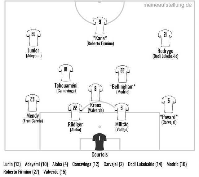 Auf der Torwart-Position sollte alles klar sein: Thibaut Courtois und Andriy Lunin sollten die Torhüter-Position gut belegen. Ein dritter Torhüter ist üblich, aber für diese Rolle könnte ein Torwart aus der eigenen Akademie interessant werden.